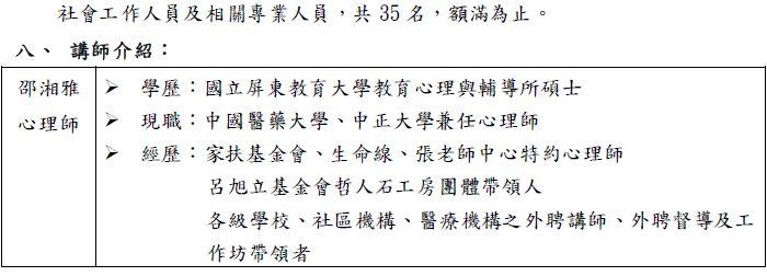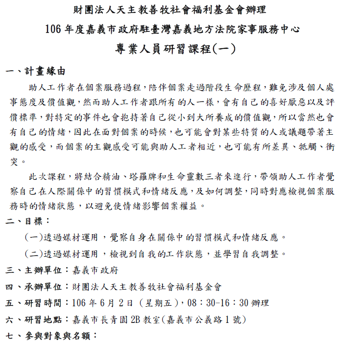 106年度嘉義市政府駐臺灣地方法院家事服務中心專業人員研習課程 (一)